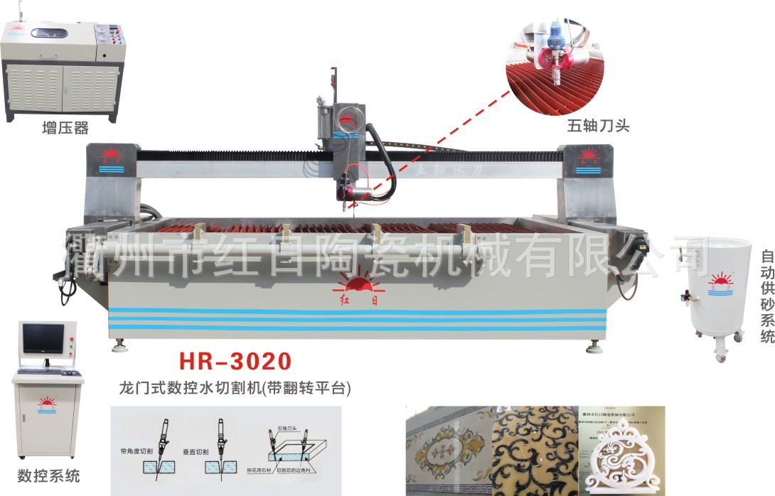 功能介紹:數控水切割機(水刀)目前廣泛應用于瓷磚拼花、石材拼花,玻璃、金屬等行業的異形切割,可以使用CAD軟件繪圖來實現任意圖案的切割。